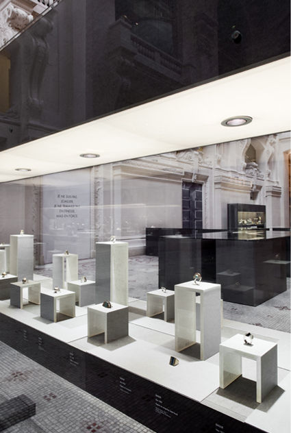 La géométrie épurée, le contraste des matières et le travail sur la perception de l'échelle donnent aux bijoux une présence proche de la sculpture et de l'architecture.